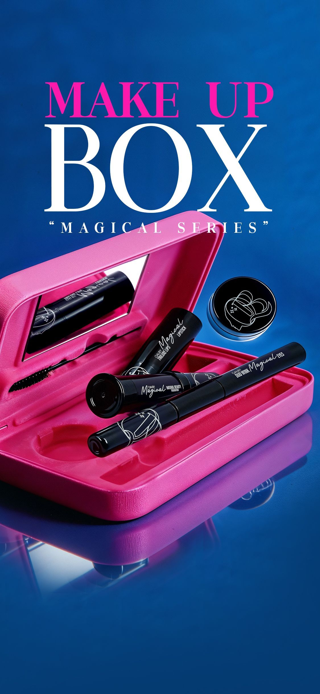 Qalby Makeup Box – Make-up cepat, solusi terbaik untuk wanita on-the-go! Dicipta dengan magical effect untuk look natural beauty dalam sekelip mata. Saiz comel macam smartphone, mudah simpan dan senang bawa ke mana-mana. Tampil stunning & professional setiap masa!