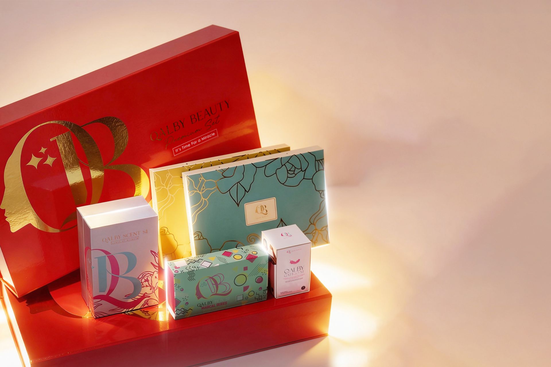 Qalby Premium Set – Semua yang anda perlukan untuk beauty & wellness dalam satu kotak mewah! Makeup, scarf, perfume & supplement, lengkap dalam satu set. Perfect untuk treat diri sendiri atau hadiahkan pada yang tersayang. Keterujaan, gaya & kesihatan, sempurna untuk setiap hari!